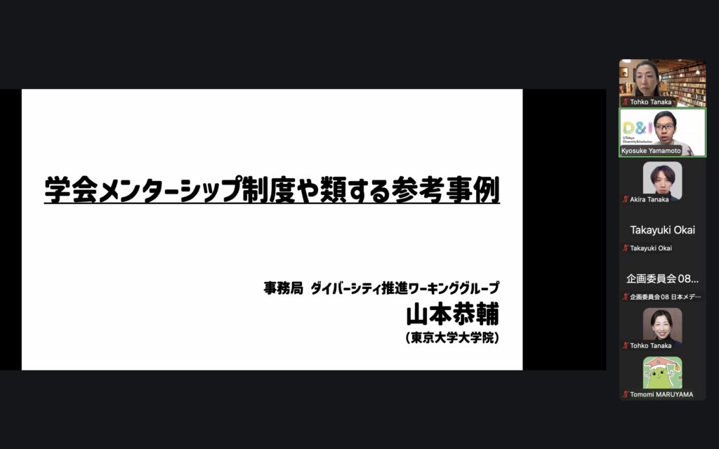企画はダイバーシティ推進ワーキンググループです。40期の理事会によって、ダイバーシティワーキンググループが設置される運びとなり、39期に策定された「日本メディア学会ダイバーシティ宣言」の公開を受けてのものとなります。