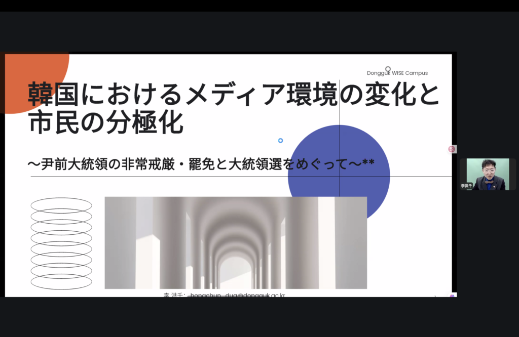 韓国のメディア環境が有権者の政治志向の著しい分断の背景となっている現状は、日本の状況――主要選挙にSNSと動画が重要な役割を果たし、偽情報・誤情報や誹謗中傷が深刻な問題となっている――よりも、一歩先をゆく形で課題を提供しているという主旨のシンポジウムでした。